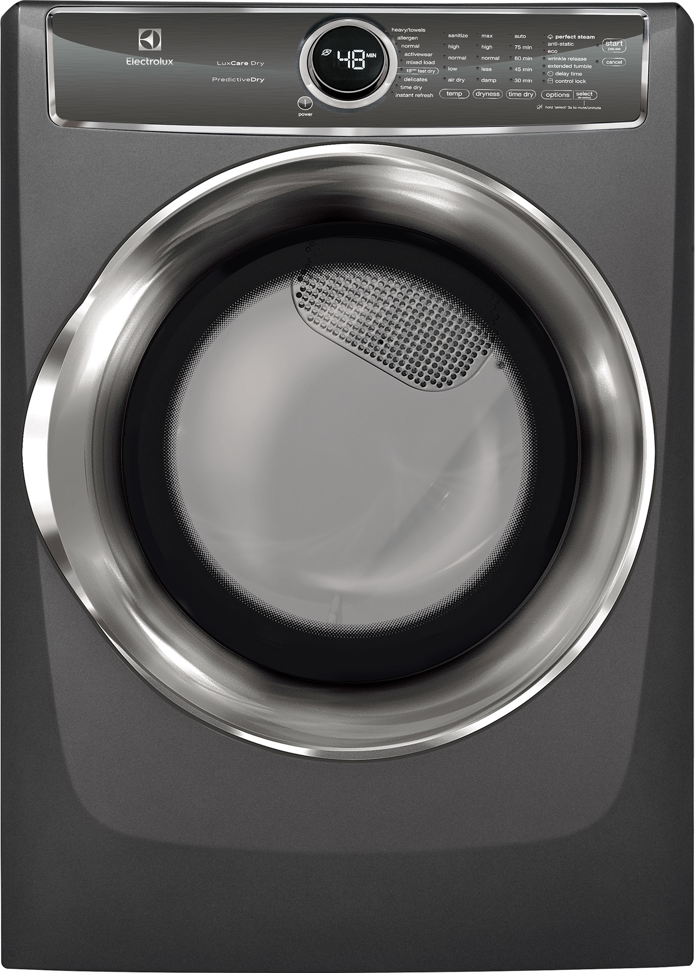 The Electrolux Perfect Steam electric dryer with Predictive Dry has a more precise sensor to protect fabrics from overdrying. Remove wrinkles and quickly refresh items with steam in 10 minutes with Instant Refresh cycle. Quickly dry the items you need most with the 15-Minute Fast Dry.Read More